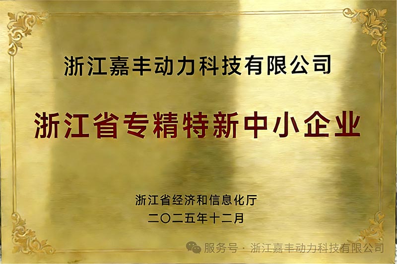 Récemment,Zhejiang Jiafeng Power Technology Co., Ltd.(ci-après dénommé « Jiafeng Power ») a reçu des nouvelles passionnantes. Grâce à ses performances exceptionnelles en matière de spécialisation professionnelle et d'innovation technologique, l'entreprise a réussi l'examen et a reçu le titre de petite et moyenne entreprise « spécialisée, raffinée et innovante » dans la province du Zhejiang.